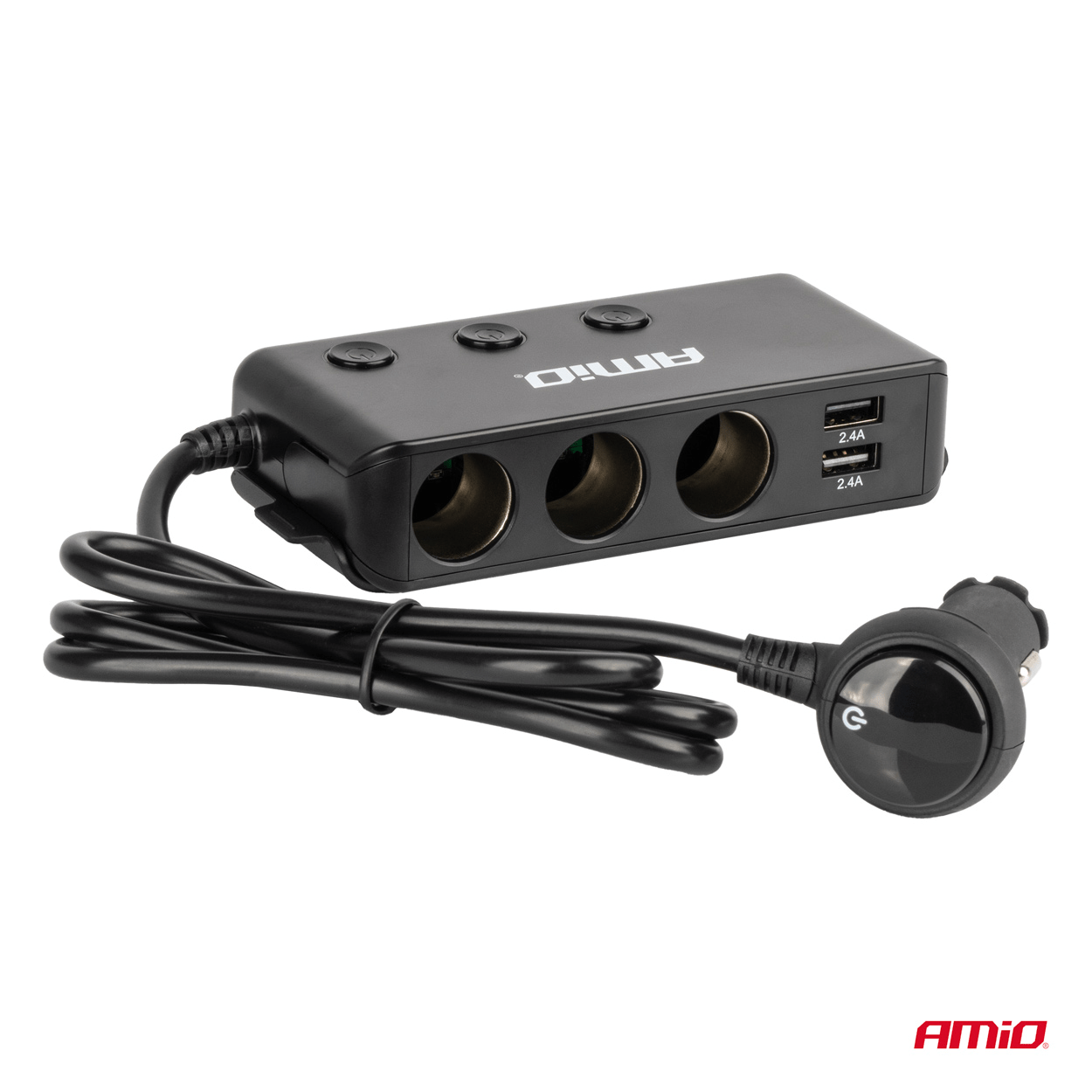 AMIO 3 Doppelzigarette Leichterstecker Splitter mit (3x USBA & 1x USBC) 12V/24 V und Voltmeter Schwarz