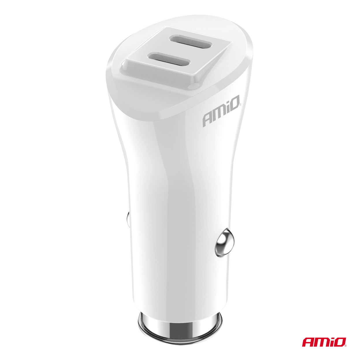 AMIO CAR Ladegerät Telefon Dual USB-C 40W 12/24 V Weiß