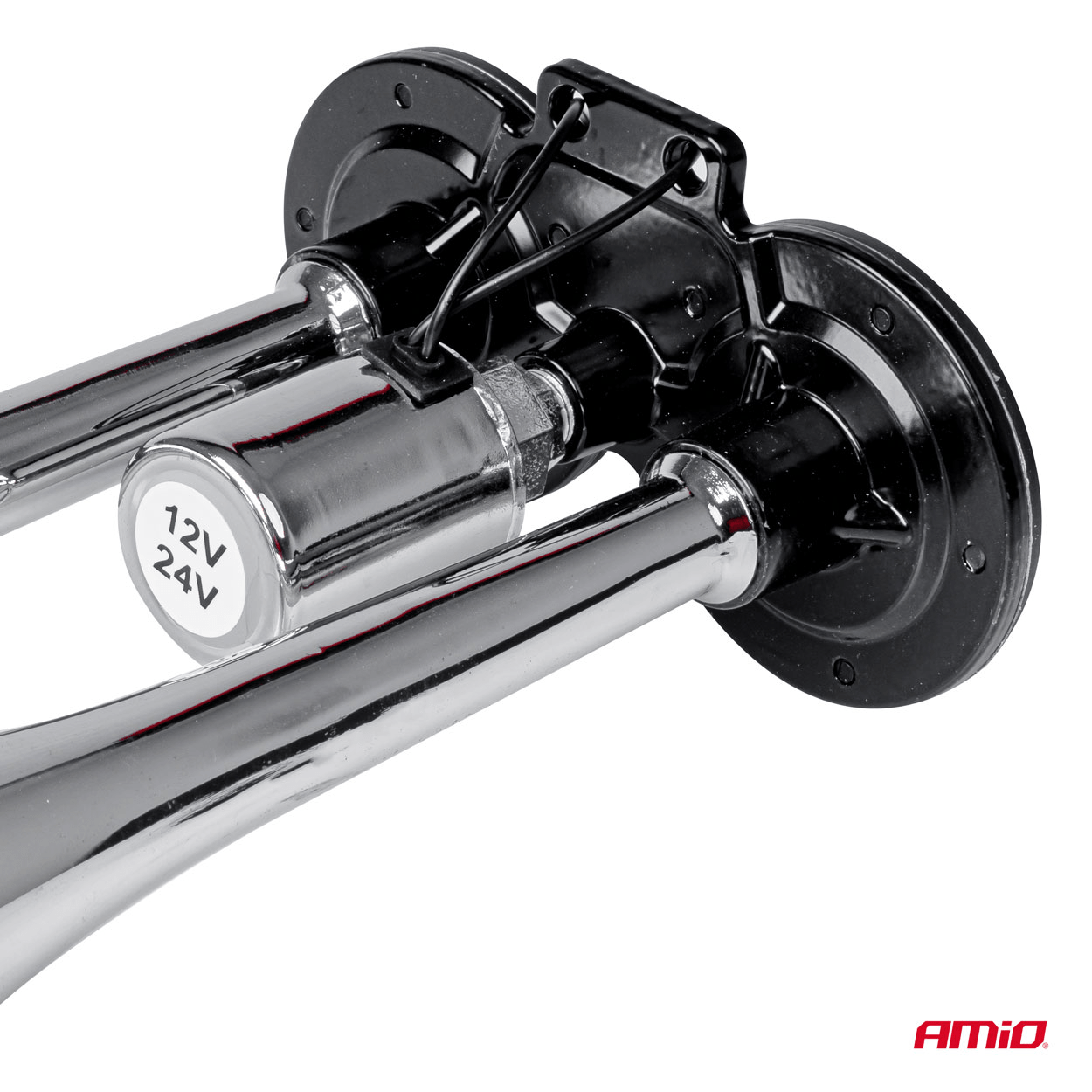 Amio Double Trompete Trainhoorn / Airhoorn 115db - Zug Hoorn Horn (exkl. Kompressor) Silber