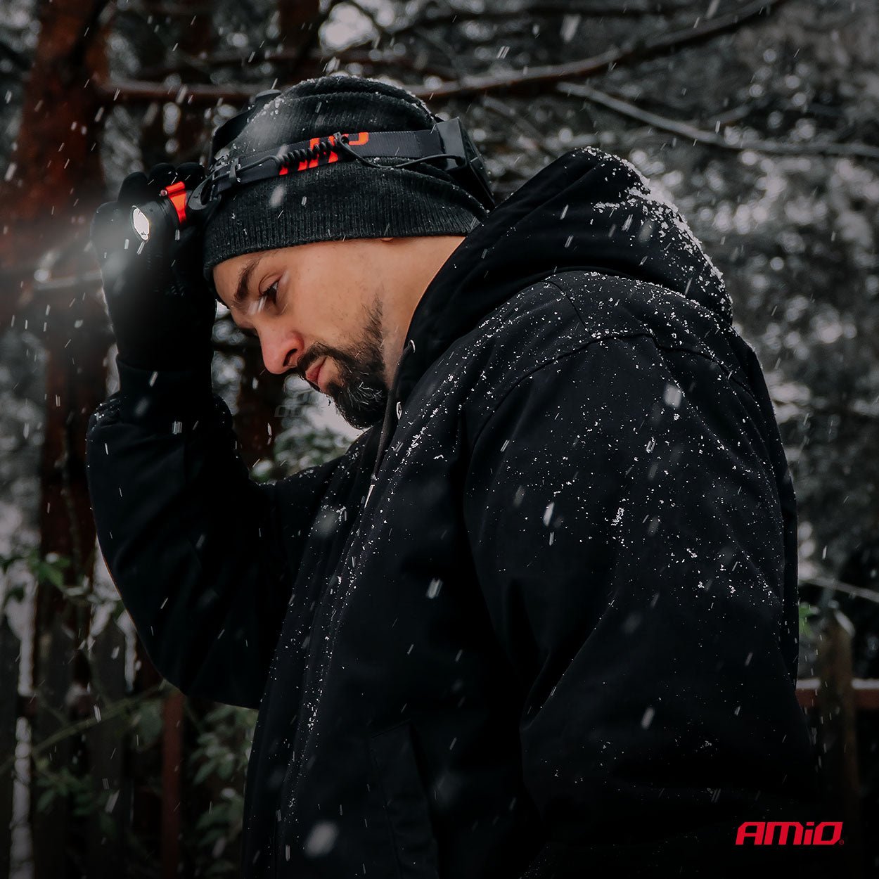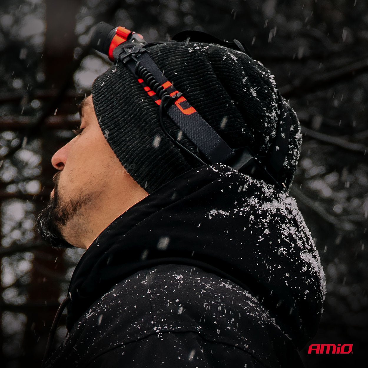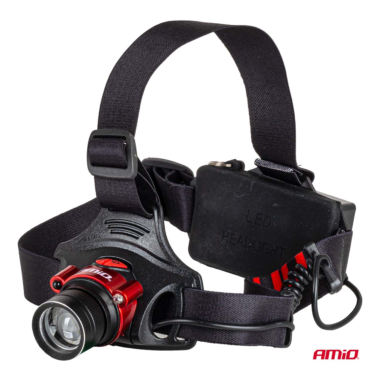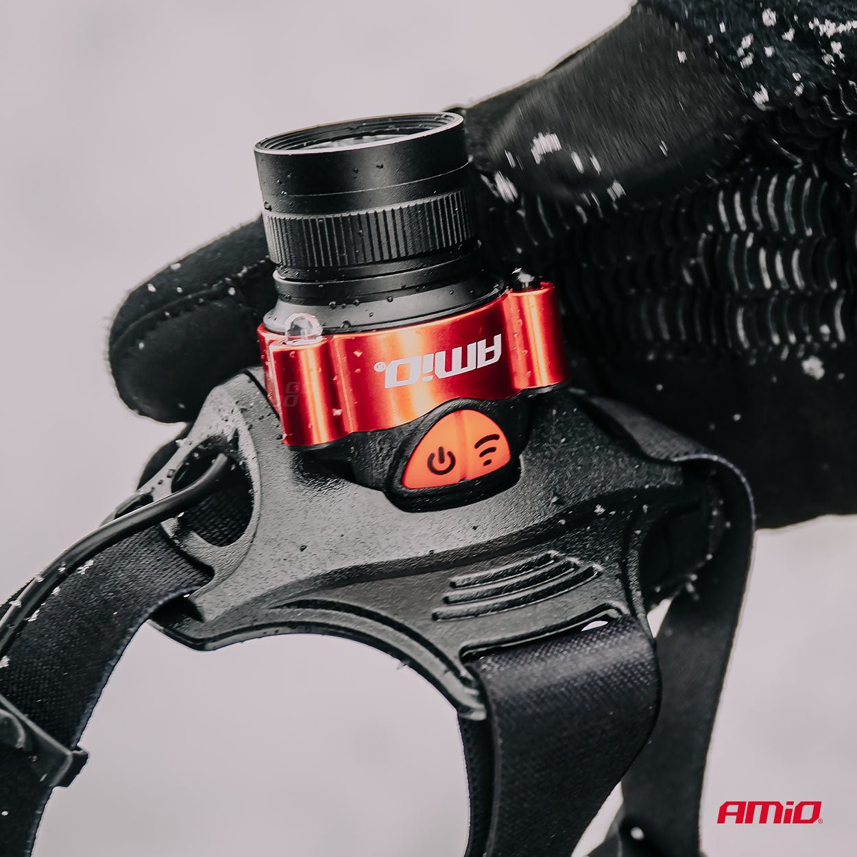 AMiO LED-Stirnlampe T6 3600mAh mit Bewegungssensor, Zoomfunktion und ABS+Aluminium-Gehäuse - für Arbeiten im Freien und Notfallsituationen