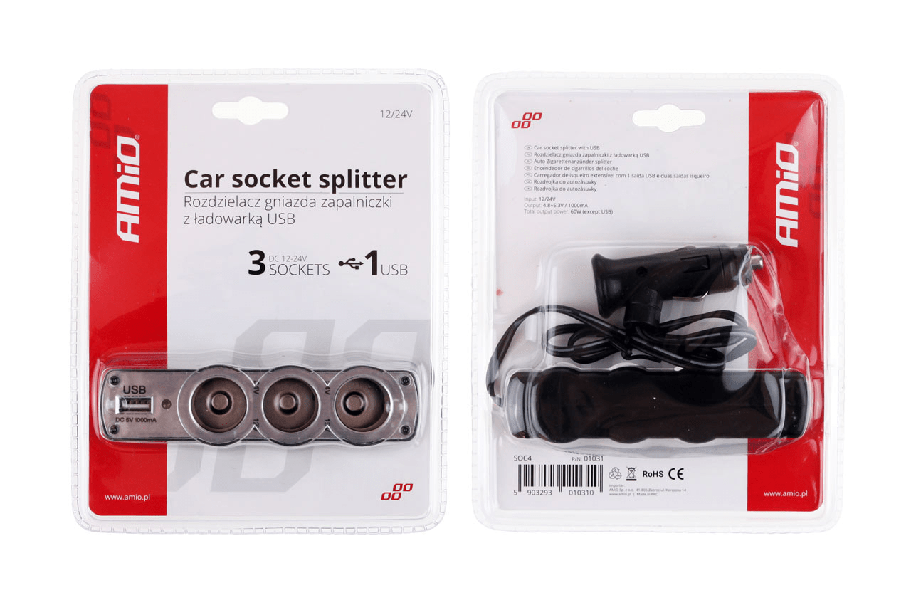 Der AMIO 3 Double Cigarette Lighter Plug Splitter mit USBA 12V/24 V in Schwarz bietet eine praktische Lösung, um eine Verbindung in drei Zigarettenlecker und eine USBE -Verbindung zu verwandeln. Einfach einzuschließen und Sie sind bereit zu gehen.