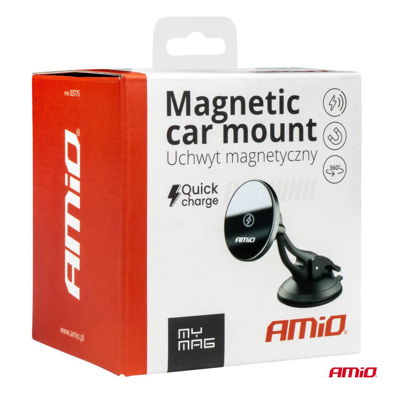 AMIO Magnetic Telephone Holder mit 15W Qi Wireless Ladegerät und Magsafe - Verstellbarer Arm und Saugkappe schwarz
