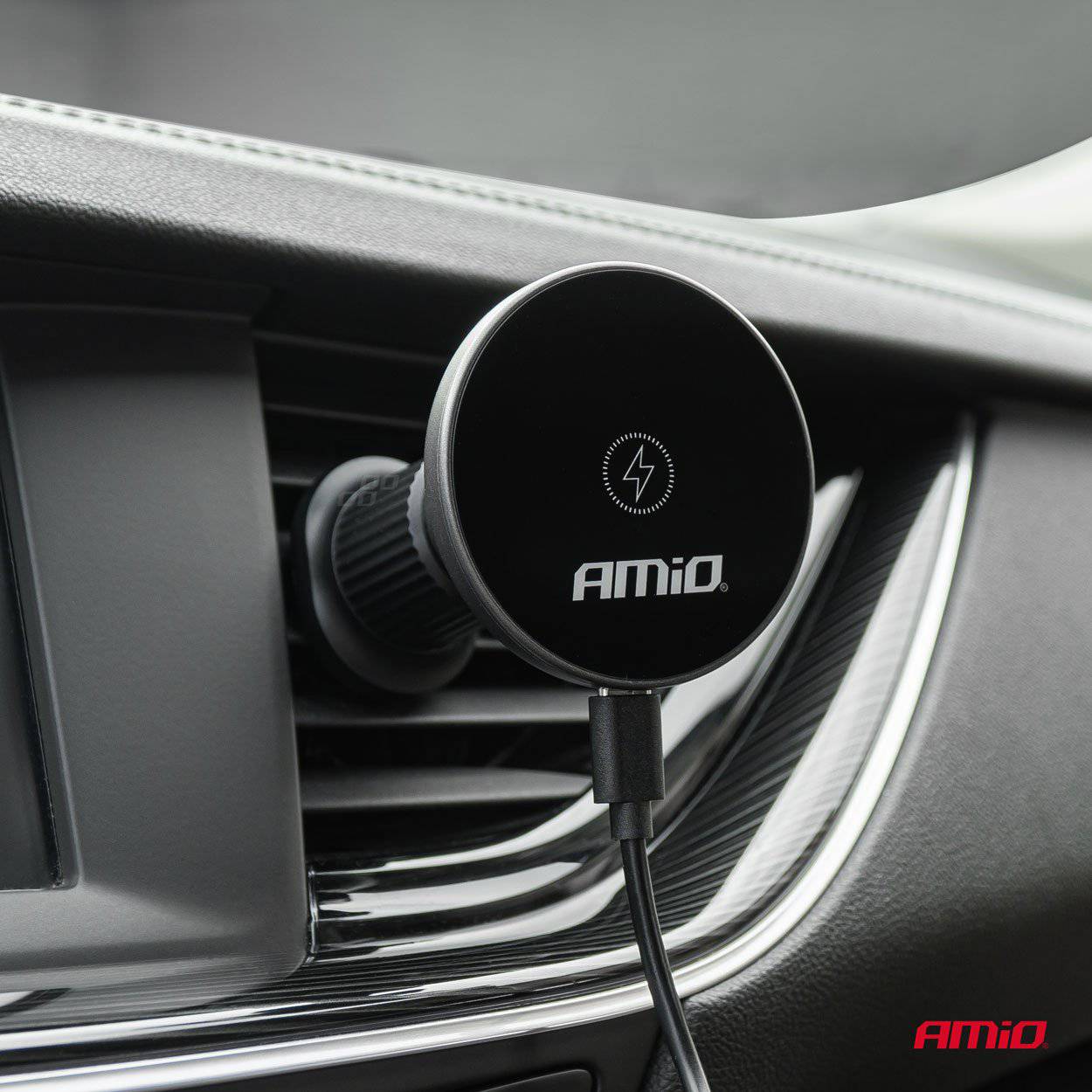 Amio magnetischer Telefonhalter für Lüftungskühler mit 15W QI Wireless Ladegerät und Magsafe - 360 ° einstellbares Schwarz