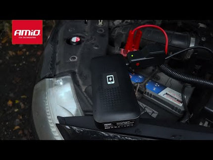AMiO Tragbarer Starthilfe-Booster 12V 12Ah 800A - Mit Powerbank, kabellosem Ladegerät und LED-Taschenlampe für Benzin- und Dieselfahrzeuge