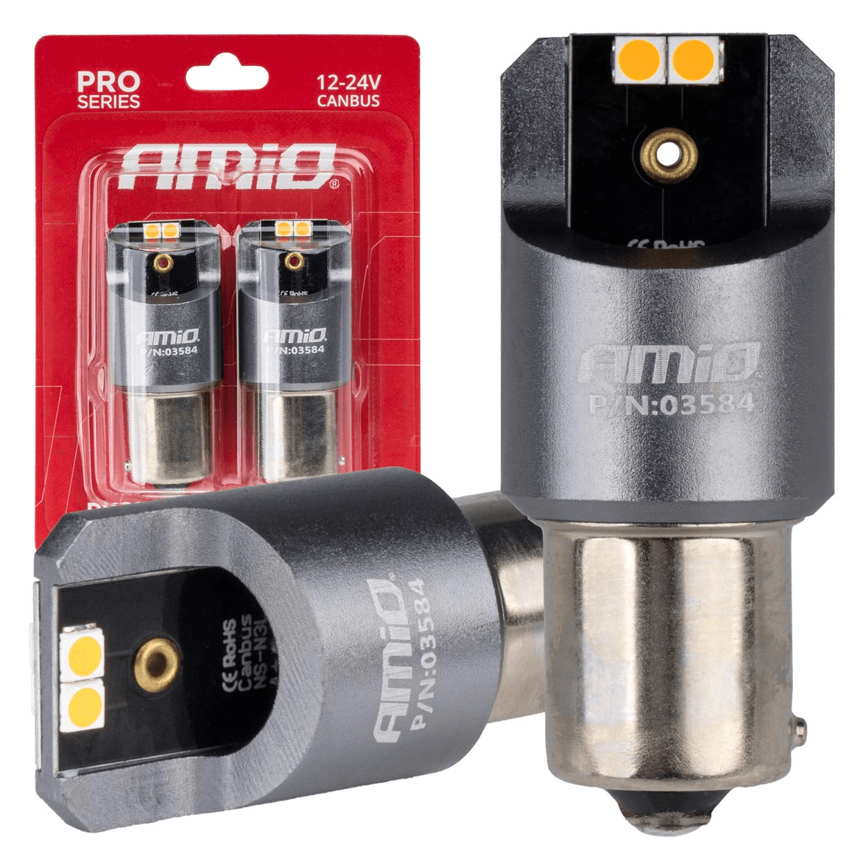 AMIO PY21W BAU15S LED 12V -24V 4x3030 SMD Oranje Canbus [blinkendes Licht - Richtungsanzeige] (2 Teile)