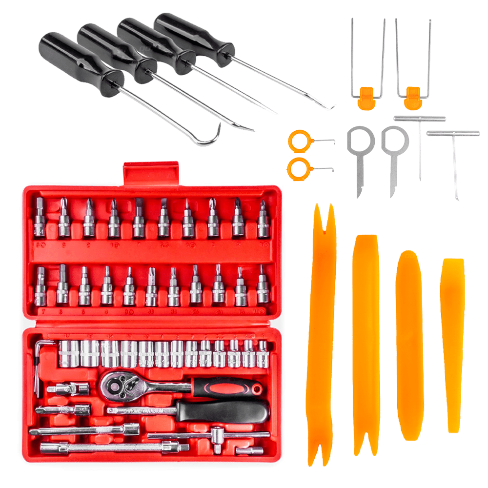 Dieses Cover -Tasten besteht aus 46 Elementen und besteht aus hochwertigem Chrom -Vanadium -Stahl. Die Komponenten sind bequem in einem kompakten Gehäuse angeordnet. Dieses Set ist ideal für den professionellen als auch für den Amateurgebrauch. Professionelle Produktion und temperierte CRV -Chroma Vanadium Staal gewährleisten Stärke und Haltbarkeit. Alle Größen der Kappenschlüssel sind für die Bequemlichkeit des Doethetzelvers gekennzeichnet.