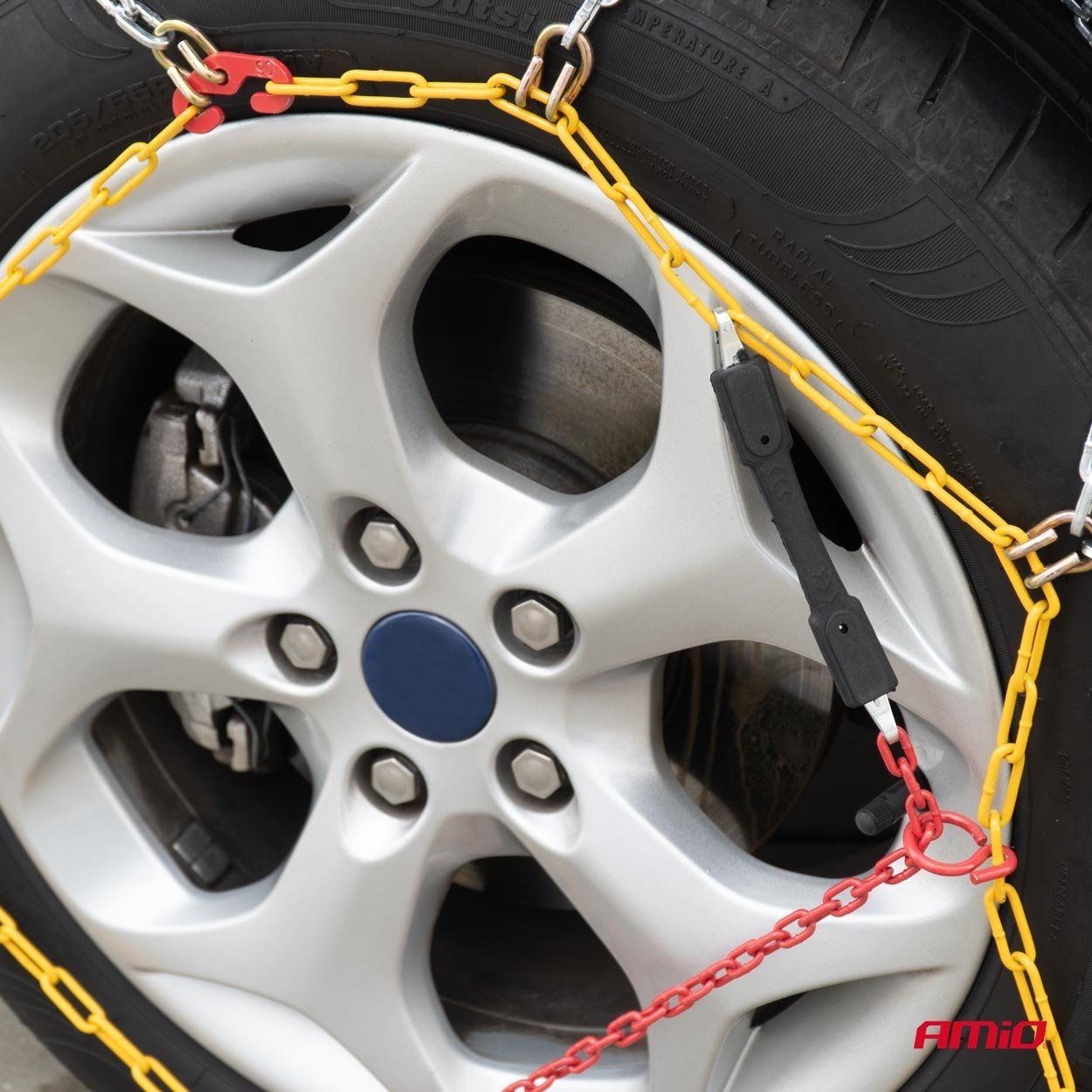 Amio -Schneeketten KN60 wurden speziell für Fahrzeuge bis 1800 kg ausgelegt, die zusätzlichen Griffe auf Schnee und eisigen Straßen benötigen. Diese Ketten bestehen aus gehärtetem Stahl mit einer Schalthöhe von 12 mm für starke Griffe und langfristige Leistung.