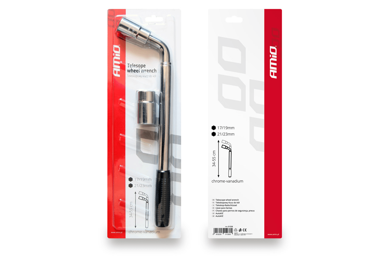 Amio Wielmersleutel Telescopic Universal mit Kupplungsstück (17 19 21 23 mm) [Wielbout -Schlüsselwerkzeuge]