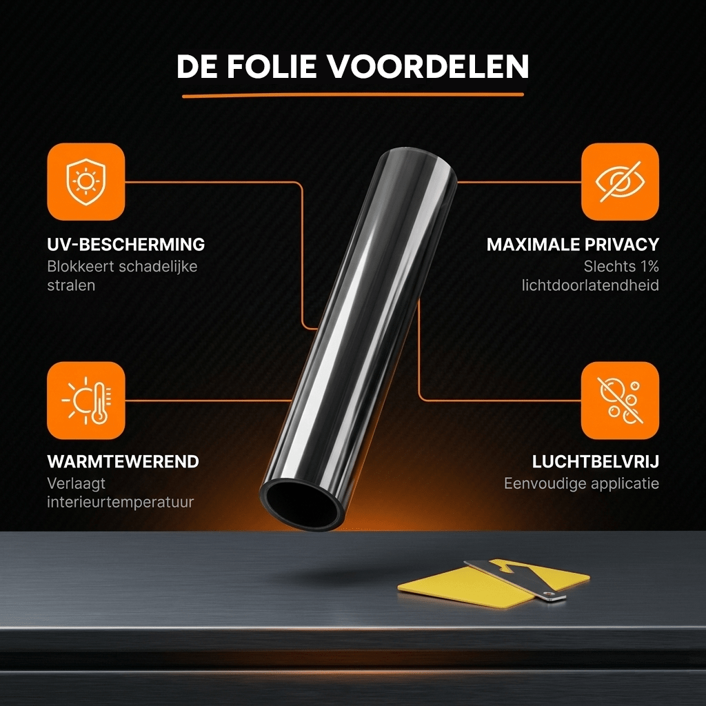 Autoamfolie Tint Vinyl Black 50 x 300 cm (1%) Schwarzer Fensterfilm für Sonnenschutz und Privatsphäre mit Werkzeug