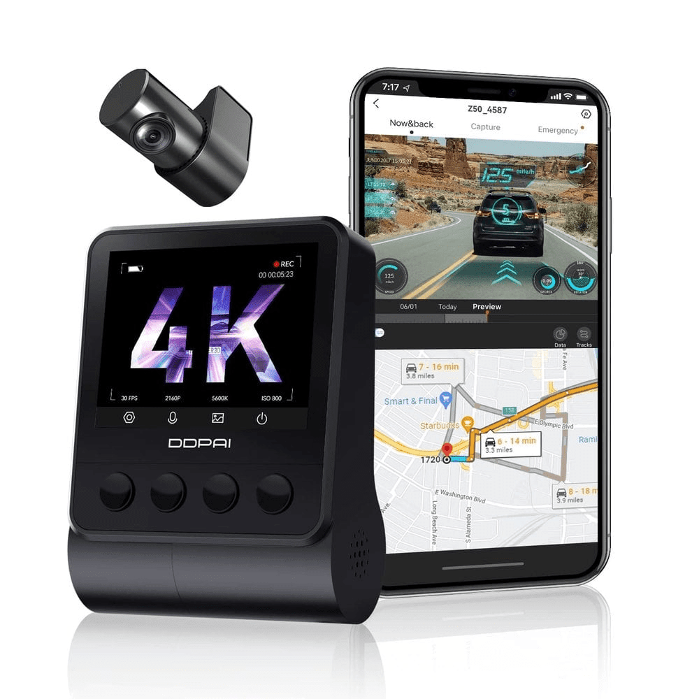 Das DDPAI Z50 2Ch 4K WiFi GPS Dashcam 2Ch ist Highend Dashcam mit hervorragenden Spezifikationen. Er filmt mit sehr scharfem Ultra 4K 3840p auf der Vorderseite und Fullhd 1080p hinten. Er ist auch mit WLAN und GPS ausgestattet. Auf dem 2,3 -Zoll -LCD -Bildschirm ist das Menü auch einfach zu bedienen, und Sie können leicht aufgenommen werden.