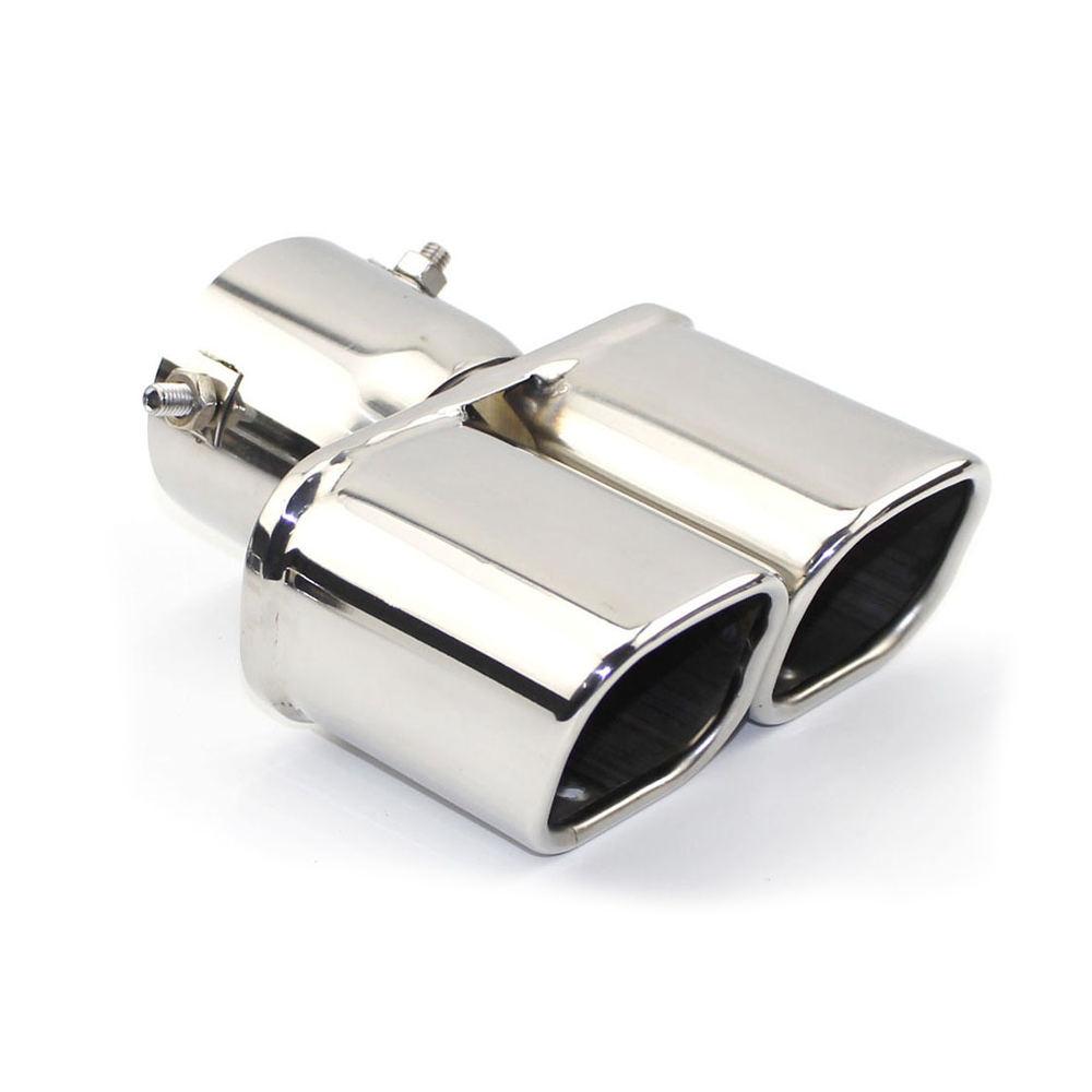 Mit diesem doppelten Auspuff -Kopfstück / Ende Edelstahl verleihen Sie Ihrem Auto einen sportlichen Look. Dieses Kopplungsstück ist leicht zu befestigen und für viele Automarken universell*. Nicht zufrieden mit dem ursprünglichen Auspuff? Dann ist dies die perfekte und einfachste Lösung. Einfach zu befestigen durch Anziehen von 3 Nüssen.