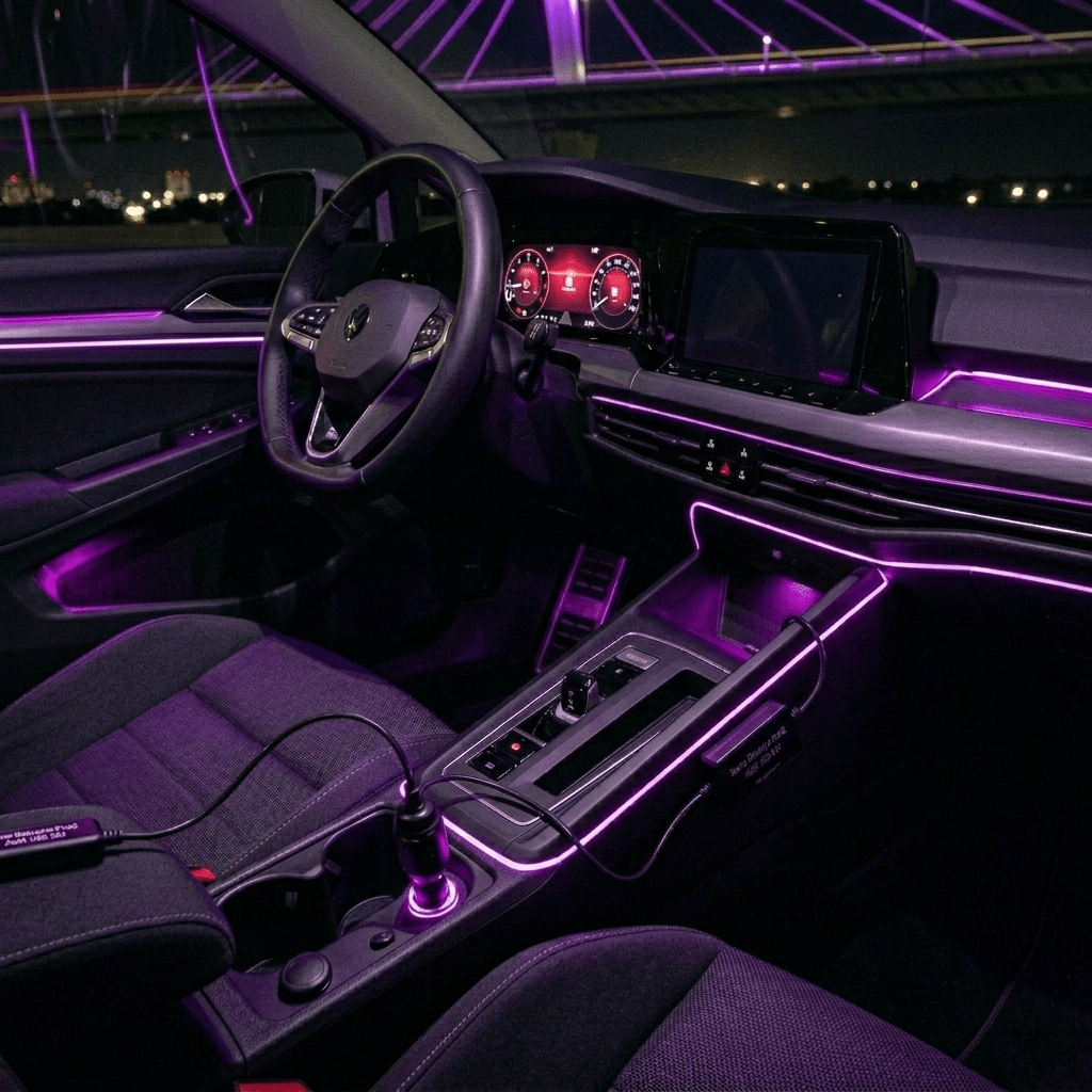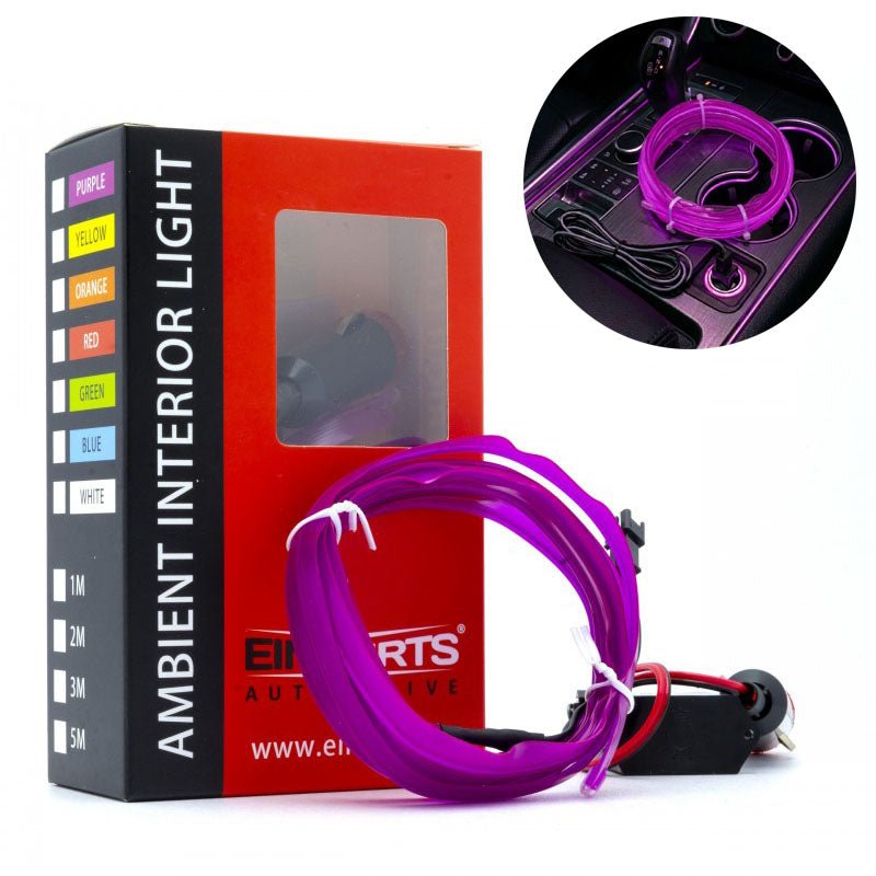 Einparts LED Ambient Interieurverlichting 2m Paars - Universele 12V Auto Sfeerverlichting 360 Graden Dunne 2mm Strip Compleet Pakket