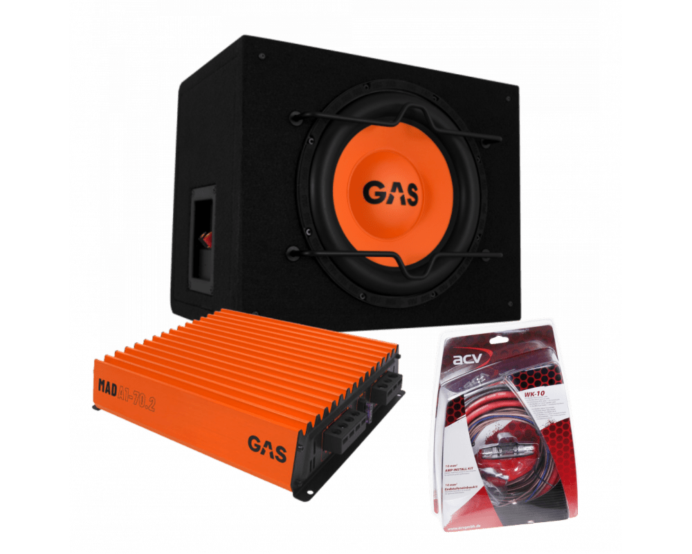 Gas Audio Power Gas Mad Subwoofer Set MAD B1-110 + MAD A1-70.2 + WK-10 für Auto-Soundsysteme und hochwertige Klangqualität