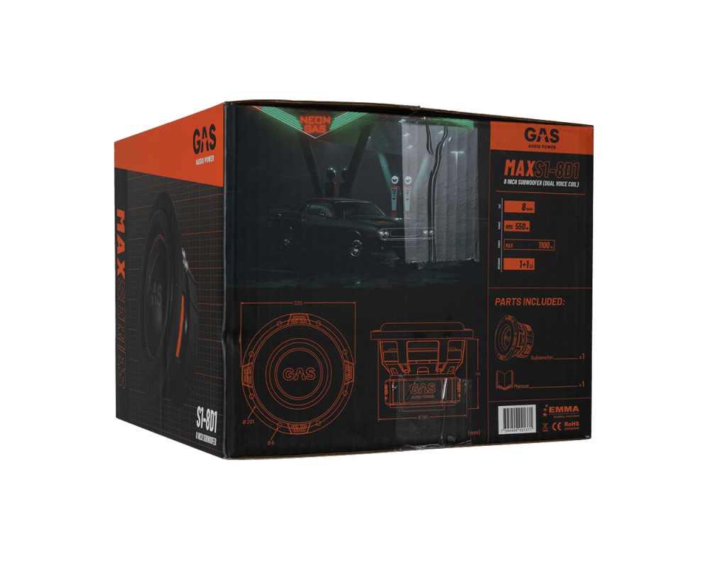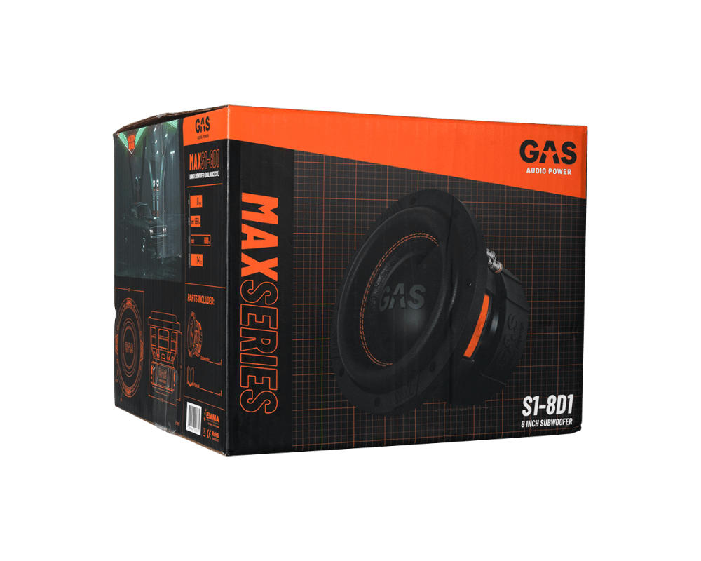 Subwoofer von Gas Max Level 1 8 "2x1 Ohm für Auto -Soundsysteme und hochwertige Klangqualität