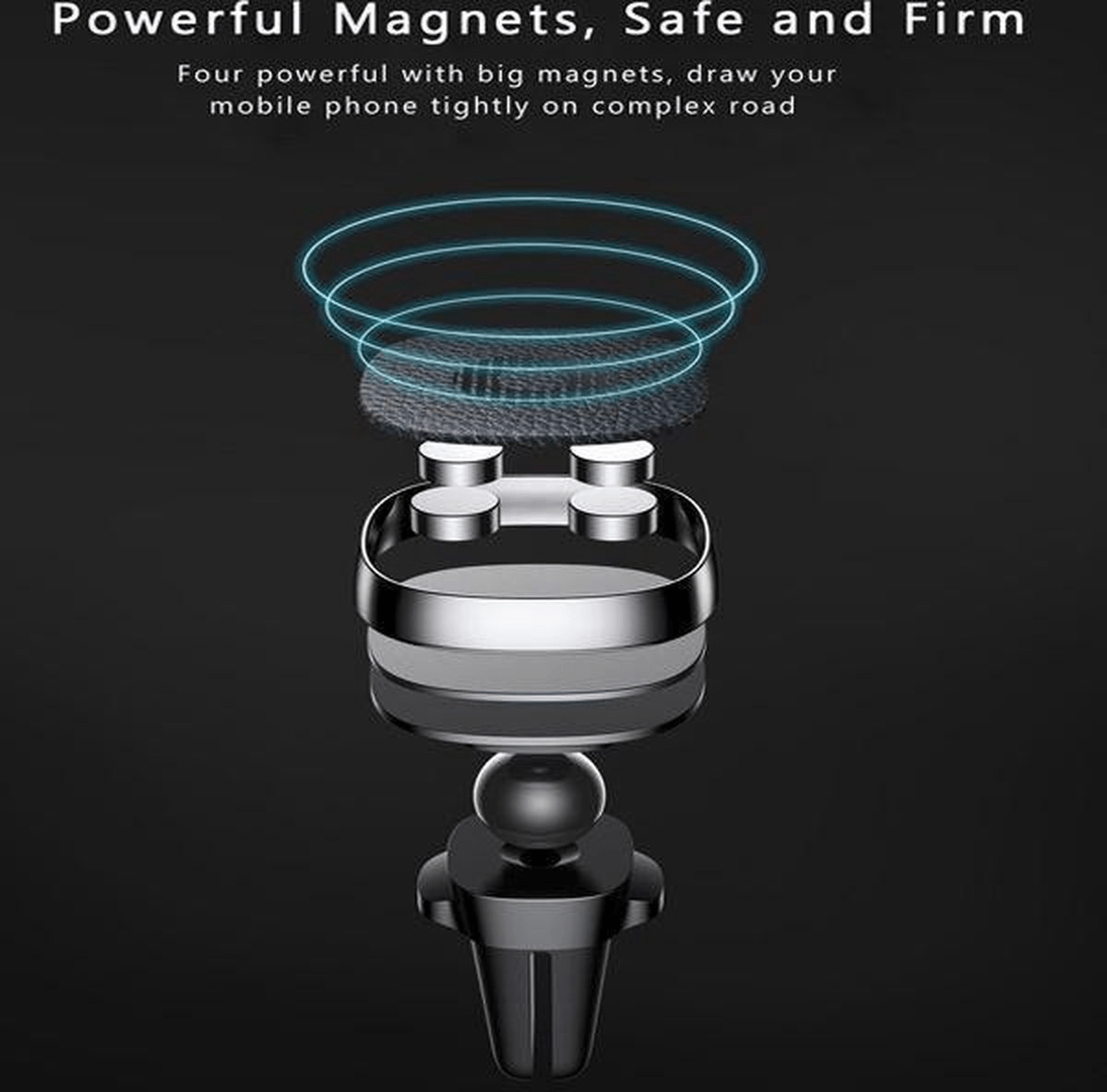 Der grundlegende Magnethalter bietet Ihren Smartphone -Support an und stellt ihn in einen komfortablen Betrachtungswinkel. Sie platzieren diesen Magnethalter in der Klimaanlage aus dem Auto. Darüber hinaus werden zwei Magnetplatten mit dem grundlegenden Airco -Halter geliefert, den Sie hinter dem Gerät oder zwischen einem Smartphone und einem Smartphone -Abdeckung halten. Das Gerät wird von 4 leistungsstarken Magneten in Position gehalten.