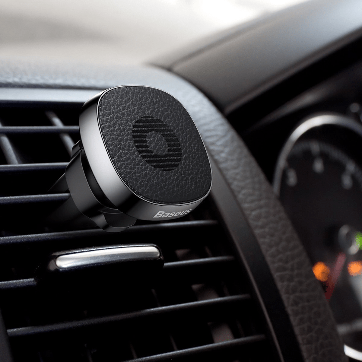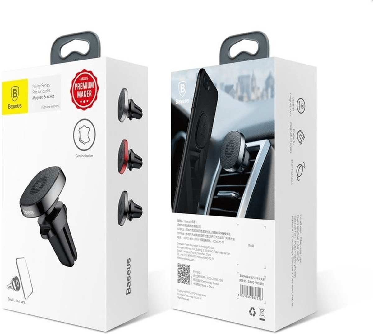 Magnetischer Luftgitterhalter von Basis. Durch die Verwendung weicher Materialien (Silikon und Leder) dieses Halters gehören die Beschädigung Ihres Geräts und der Lüftungsgrill der Vergangenheit an. Sehr einfach zu bedienen.