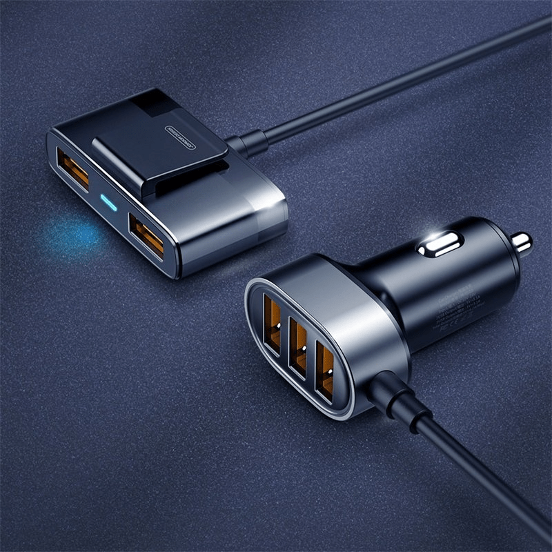 Dank dieses Ladegeräts, das Sie in das Zigarettengericht einfügen können, können Sie schnell bis zu 5 elektronische Geräte mit Strom versorgen. Es ist eine große Bequemlichkeit für jede Reise. Der hohe Ausgangsstrom sorgt für eine schnelle Energieübertragung. Mit dem Clip können Sie das Ladegerät leicht überall anbringen, zum Beispiel auf der Rückseite des Stuhls. Mit dem Licht werden Sie wissen, wann die Batterien der geladenen Geräte voll sind.