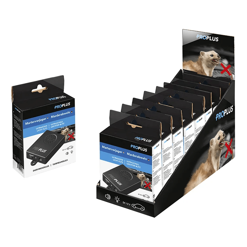 Der PREPLUS MARTERVERJAGER Ultraschall ist ein äußerst effektives Immunsystem, um Martens, Mäuse und Ratten vom Motorraum der Fahrzeuge aus zu halten. Verwendet dieses Ultraschallgerät Super Sound (2245 kHz) und Lichtblitze, um Ungeziefer zu erschrecken, ohne ihnen zu schaden. Das System ist praktisch gepackt Ausbagelte Anzeige pro 8 Teile, ideal für die Präsentation in Geschäften.