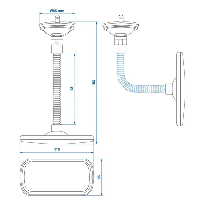 PREPLUS Universal Heck -View -Spiegel -Innenspiegel 115x55 mm mit langem Flex -Arm und Saugnapfbecher