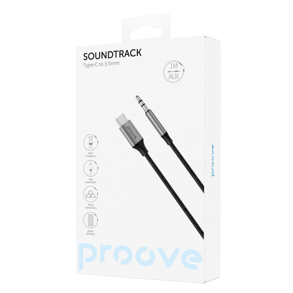 Der Proove Aux Cable Soundtrack Bietet eine zuverlässige Lösung zum Anschließen Ihrer Audiogeräte über eine typec mit einer 3,5 -mm -Verbindung. Dieses Kabel kombiniert Haltbarkeit, Vielseitigkeit und hochwertige Audioleistung, um Ihr Hörerlebnis zu verbessern.