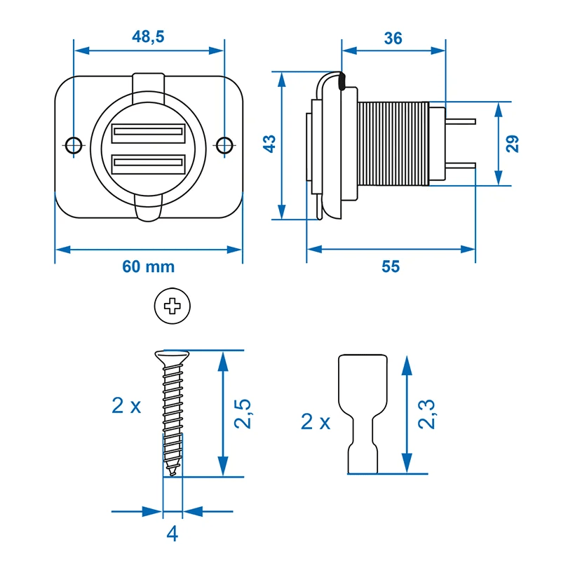 Proplus USB -Installationsbox Doppel Typ A 3100 mA - 12 V/24 V Ladebuchse mit Befestigungsmaterial