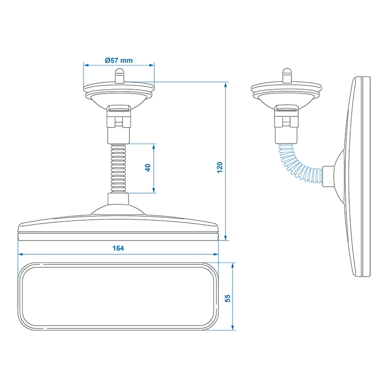 Universal Heck -View Spiegel Inner Mirror 165x55 mm mit Flex -Arm und Saugnapfe